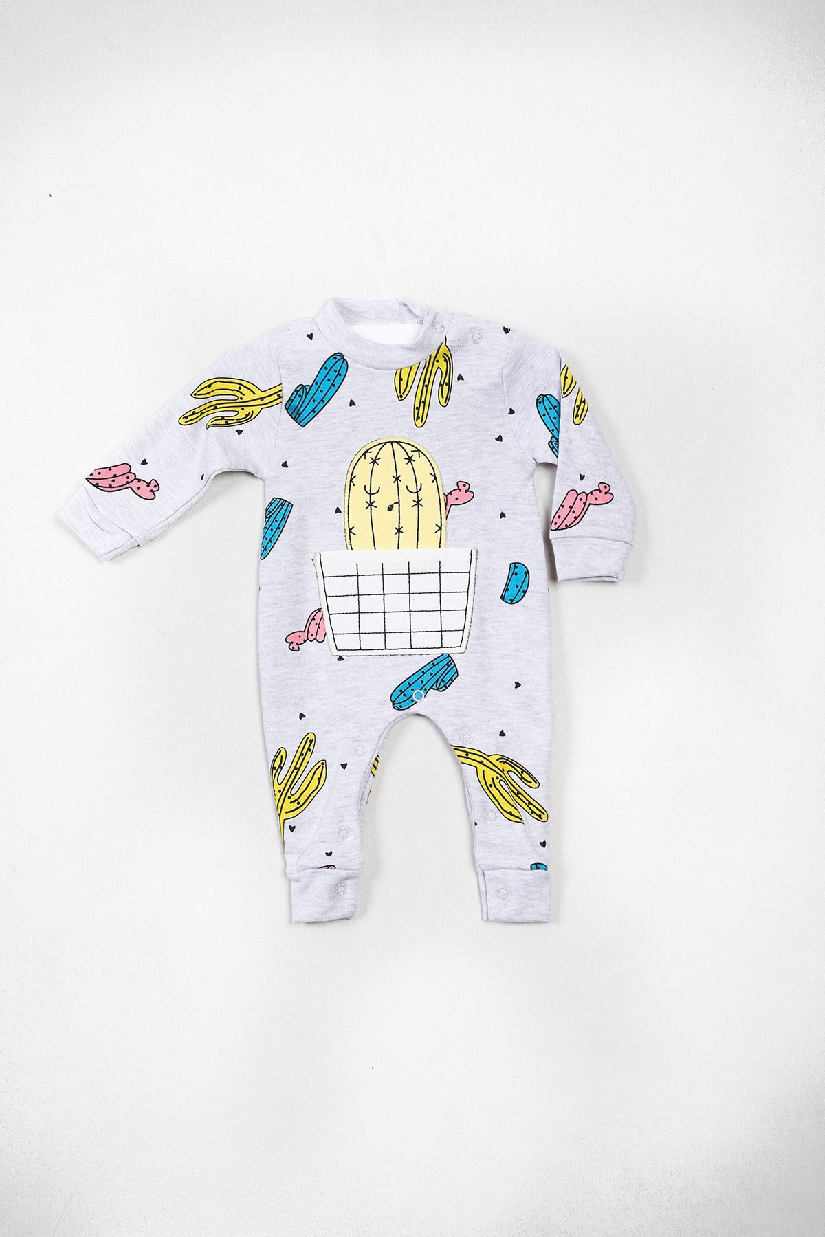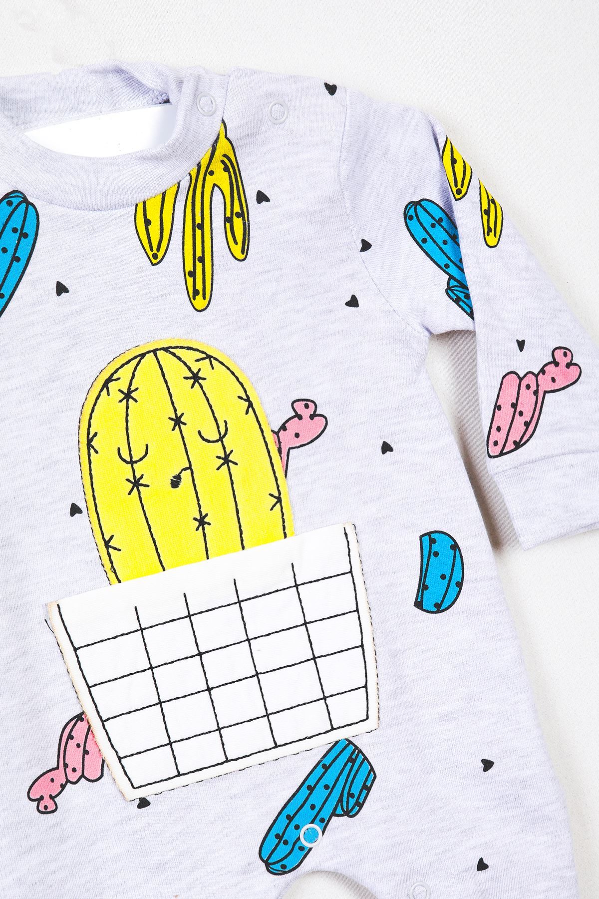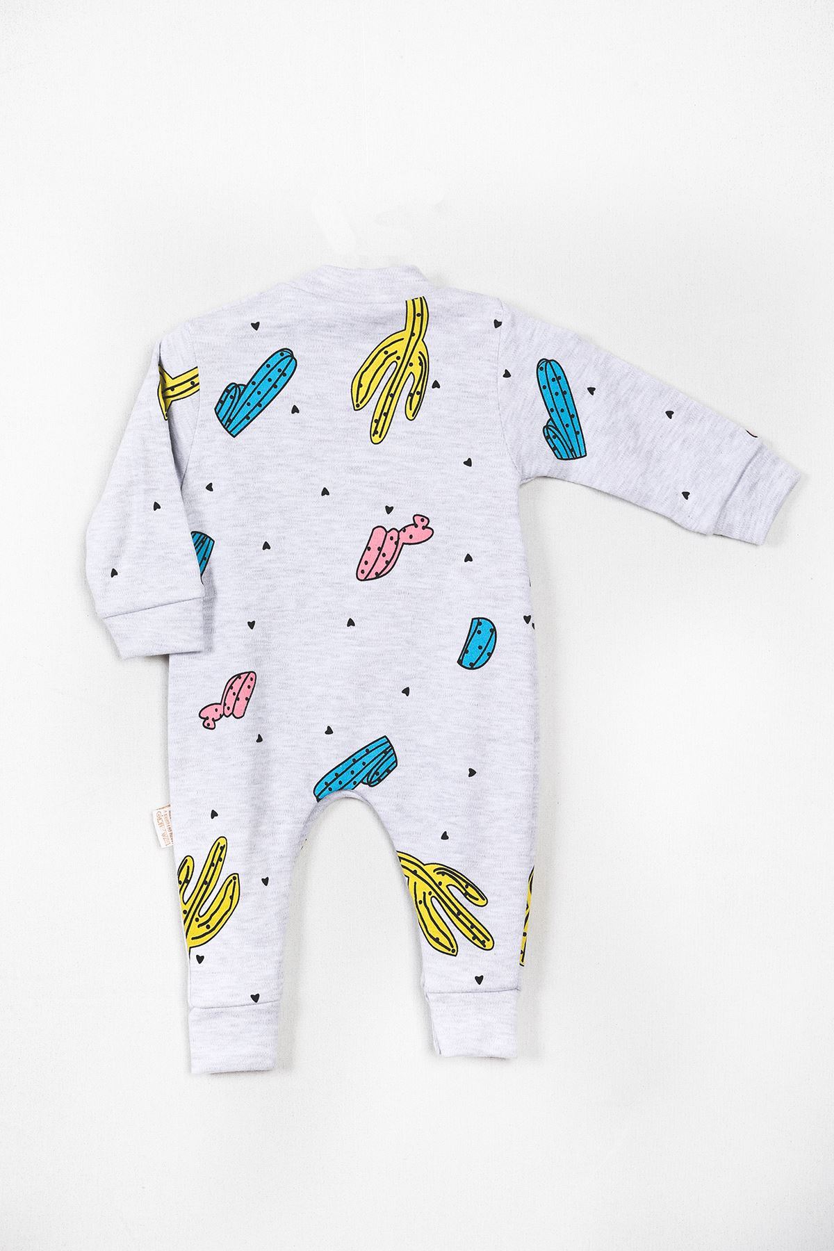 Kaktüs Baskılı Gri Tulum